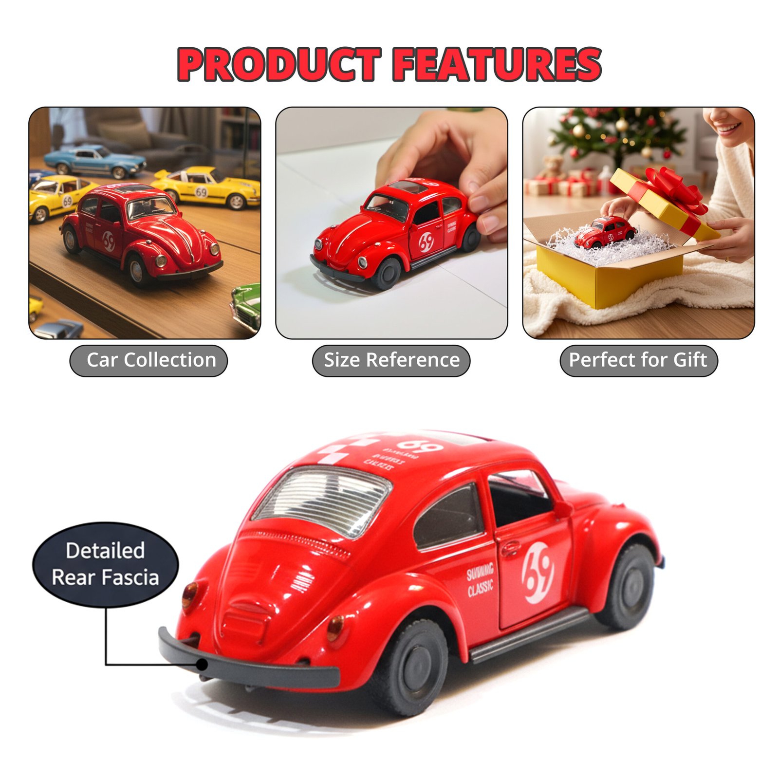 Crafted with a durable alloy body and realistic rubber tyres, this toy is built for smooth, long-lasting play. The functional openable doors add a touch of realism and interactive fun, perfect for imaginative adventures. The miniature collectable model is an ideal gift for birthdays, festivals, or any special occasion, fostering an interest in cars and classic automobiles. Its compact size makes it perfect for both display and on-the-go play.