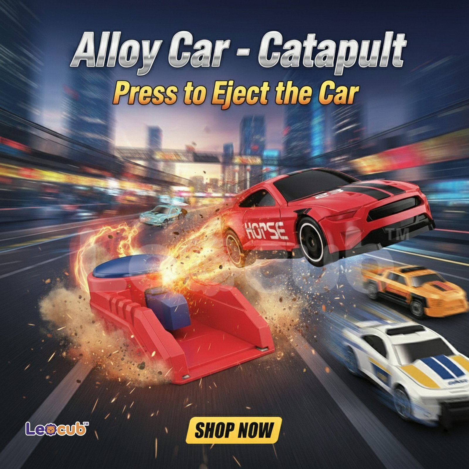 Gear up for thrilling race adventures with the Leocub Die-Cast Ejection Vehicle Launcher Set!