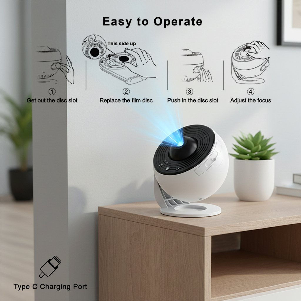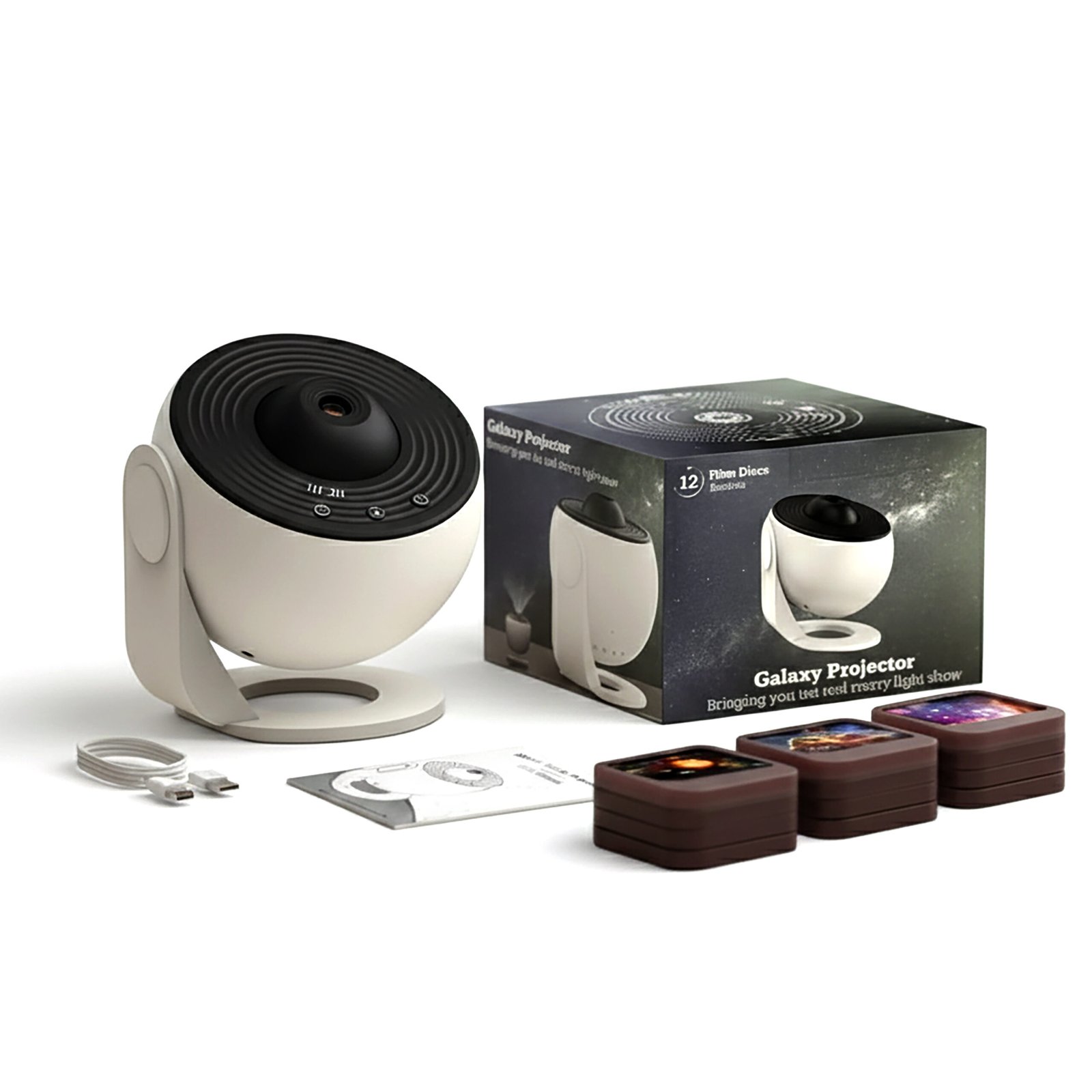 • Complete Toy Set Included: 1 Galaxy Projector, 12 Film Discs, USB Type-C Cable, and User Manual.