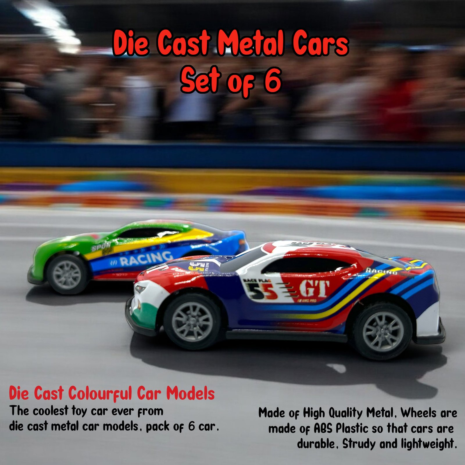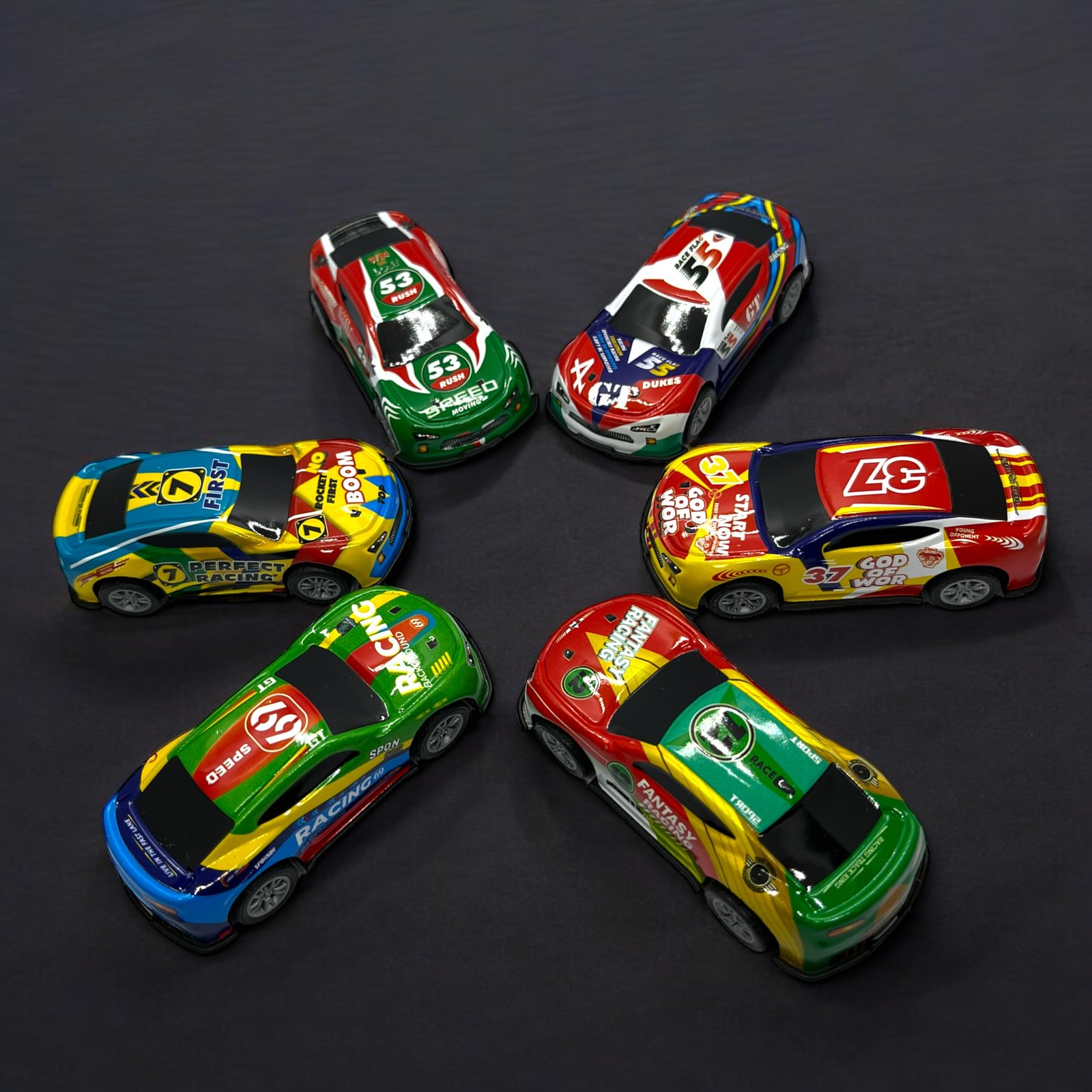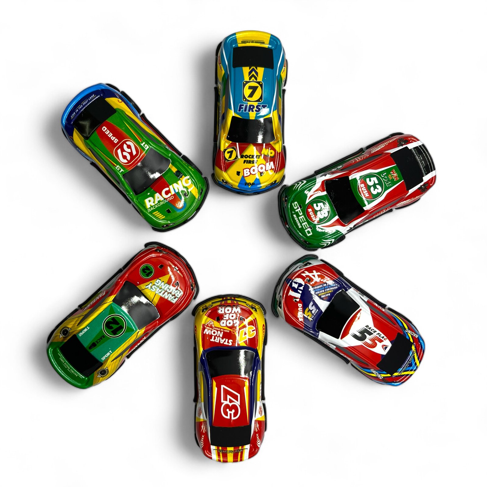 6-Piece Die-Cast Car Set – Includes six colourful mini race cars.