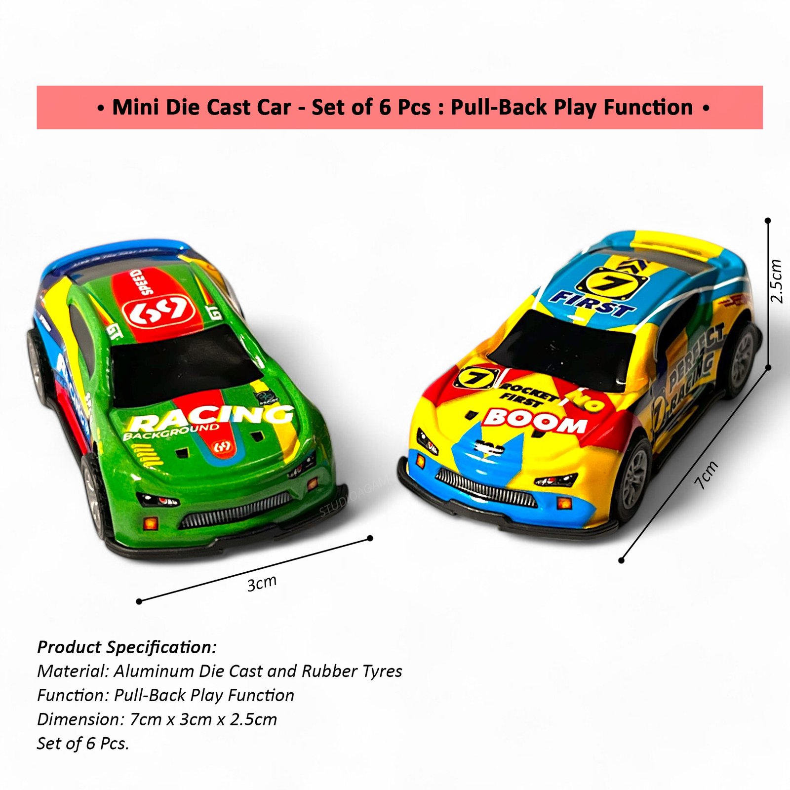 Rev up the fun with this Mini Die-Cast Race Car Toy Pack of 6, designed to bring colourful racing adventures right into your child’s hands! Made from high-quality metal, each mini race car is built to withstand active play while delivering a realistic and engaging experience.