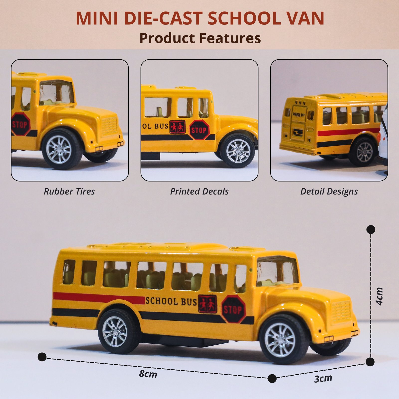 Make playtime more exciting with this 1:64 Scale Die-Cast Mini Bus Toy, crafted with a premium alloy metal body and realistic detailing. Compact, lightweight, and pocket-friendly, this miniature bus is perfect for kids to carry, play, and collect.
