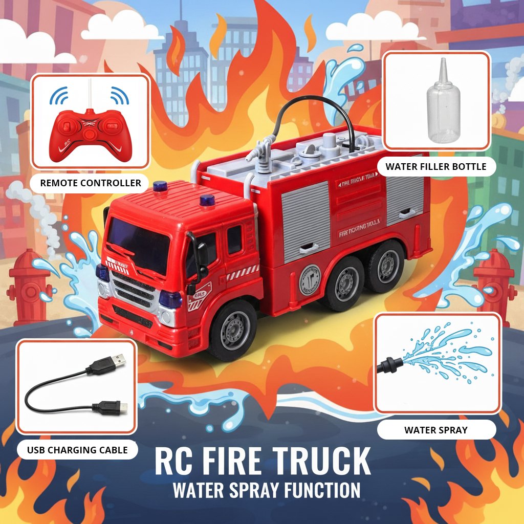 Give kids the thrill of real firefighting action with this 1:16 RC Fire Truck Toy, designed with realistic water spray, bright LED lights, and siren sound effects. With its full-featured remote control, children can drive the truck forward, backward, and turn easily as they role-play rescue missions.
