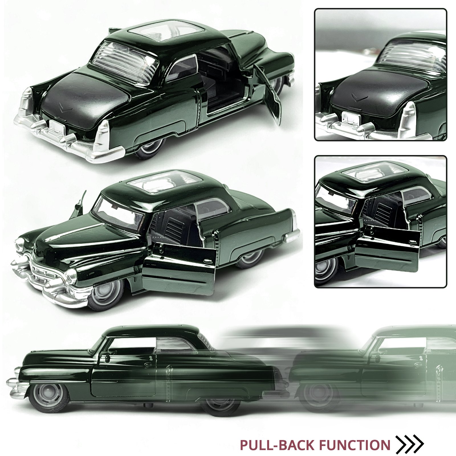 Kids can enjoy the pull-back action, while collectors will appreciate the authentic proportions and openable doors that elevate its display value. Built for both fun and aesthetics, this model car makes a stylish addition to desks, shelves, and die-cast collections.